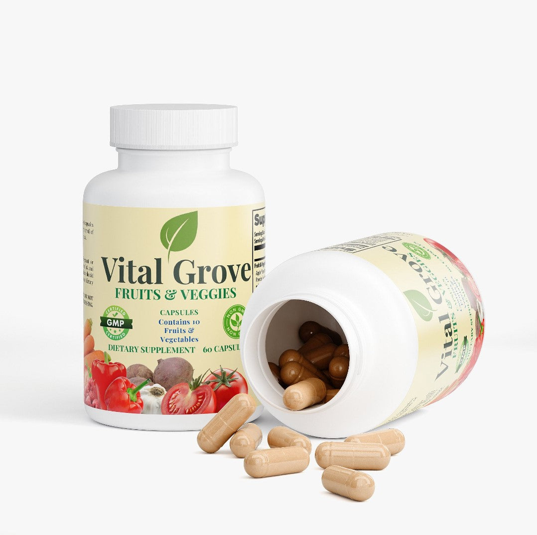 Each capsule is packed with plant-based ingredients sourced from real fruits and vegetables. Vital Grove is designed to support your daily nutrition in one convenient serving, helping you maintain a balanced approach to wellness.